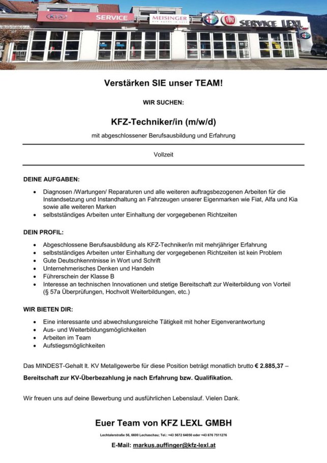 Seit September 2012 sind wir Vertragspartner für KIA, Fiat und Alfa. In Kooperation mit Fa. Meisinger, die für den Fahrzeugverkauf in unsererm Unternehmen zuständig ist. Garantieabwicklungen laufen direkt über unser Haus.